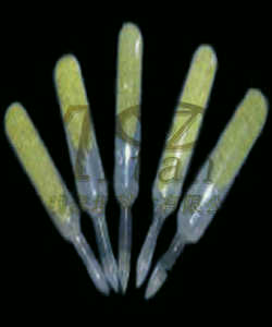 淡黃色結晶粉末。易升華,150時(shí)蒸氣壓為0.75Pa。極易揮發(fā),氣態(tài)顯黃白色
