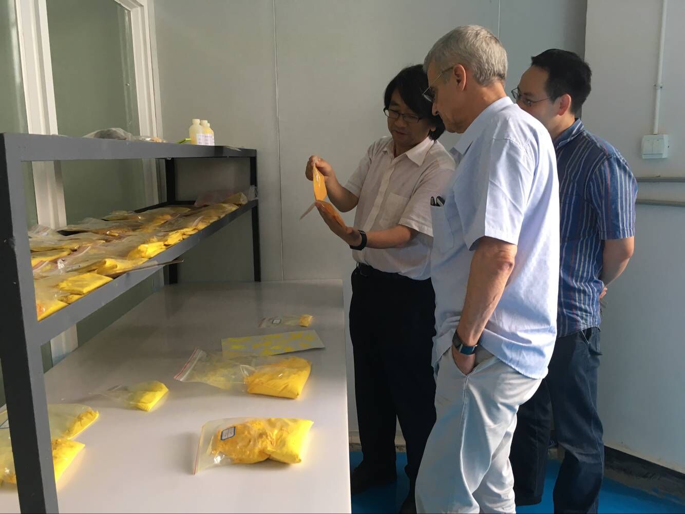 德國FALCONE公司總經(jīng)理Rudolf Gitzelmann與云南鐵坦董事長(cháng)就合作生產(chǎn)工作進(jìn)行座談。雙方交流了各自公司的基本信息,生產(chǎn)經(jīng)營(yíng)及技術(shù)情況,商討有關(guān)復合無(wú)機環(huán)保顏料的合作事宜。合談完畢,Rudolf Gitzelmann一行兩人在云南鐵坦董事長(cháng)的陪同下參觀(guān)了云南鐵坦的實(shí)驗室,Rudolf Gitzelmann詳細了解了云南鐵坦現有的實(shí)驗規模,產(chǎn)品種類(lèi)和技術(shù)發(fā)展情況。在產(chǎn)品原料展示架前,Rudolf Gitzelmann對云南鐵坦現有實(shí)驗技術(shù)和產(chǎn)品表示出濃烈的興趣,并予以肯定,最后還現場(chǎng)指導實(shí)驗人員,講解德國FALCONE公司的技術(shù)。